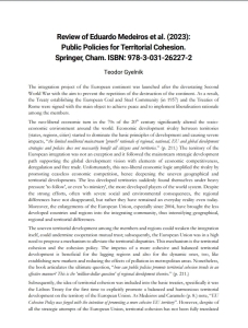 Book review: Public Policies for Territorial Cohesion by Eduardo Medeiros, Springer