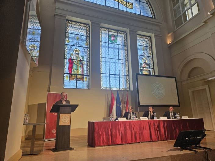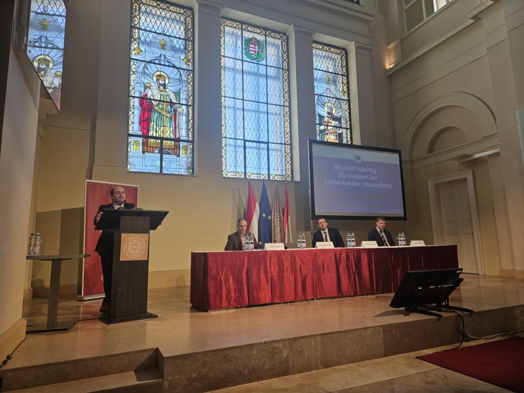 A konferencia első részében előadások hangzottak el. Kiss-Parciu Péter, a Külgazdasági és Külügyminisztérium helyettes államtitkára az Európai Területi Társulás (ETT) eszközének pozitív szerepét emelte ki. Ez egy olyan jogi eszköz, amely jogi személyiséget és keretet biztosít az európai önkormányzatok és régiók együttműködéséhez, lehetővé téve az uniós források hatékony felhasználását. Magyarország huszonöt ETT létrehozásában vett részt, amelyek közül huszonegy magyar székhellyel jött létre; jelenleg további két ETT megalakulása van folyamatban. A helyettes államtitkár hangsúlyozta, hogy vannak olyan érett ETT-k, amelyek nemcsak a különböző pályázatokon való részvételre, hanem a pénzeszközök kezelésére és a programkeretek megvalósítására is képesek, így támogatva az önkormányzatokat és a kisebb civil szervezeteket. Mindazonáltal a határon átnyúló együttműködés területén jelenleg némi stagnálás tapasztalható a többszörösen összekapcsolódó válságok miatt. Az előadó örömét fejezte ki, hogy ez a konferencia megfelelő teret biztosított a téma és a határon átnyúló együttműködés jövőbeli kilátásainak megvitatására.