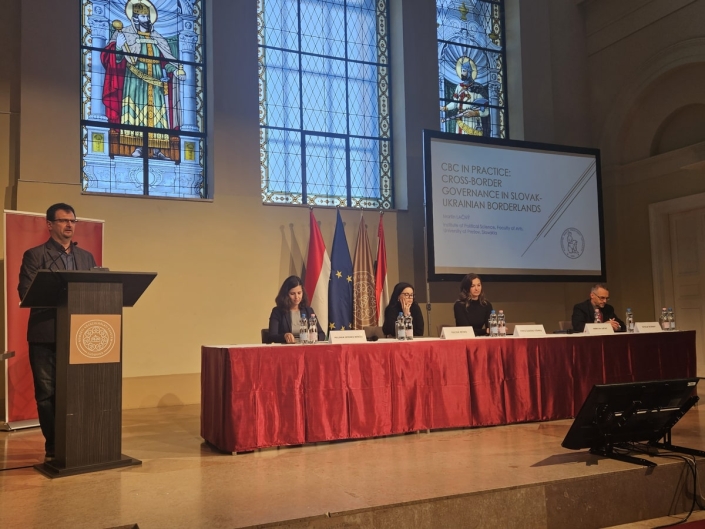 A konferencia második részében egy panelbeszélgetésen a határon átnyúló együttműködés a gyakorlatban került górcső alá Közép- és Kelet-Európában. Martin Lačný, a Prešovi Egyetem Politikatudományi Intézetének munkatársa a szlovák és ukrán határ menti együttműködés gyakorlatáról beszélt. Bemutatta egy olyan új kutatási eszköz tervezését, amely képes információt nyújtani a határ menti régiók stabilitásának, biztonságának és regionális fejlődésének humán aspektusairól. Megemlített egy érdekes mérőszámot is, nevezetesen az ok-okozati életelégedettségi indexet, amely a határ menti régiókhoz igazítva számszerűsíti a jelenlegi helyzetet, miközben megfelelő összehasonlítási alapként szolgál az ismételt értékelésekhez. Előadásában kiemelte a határon átnyúló együttműködés legjelentősebb akadályait, mint például a korrupció, a bürokratikus eljárások, a vámtisztviselők hozzáállása, a nemzeti kormányok nem megfelelő támogatása a határon átnyúló együttműködéshez, valamint a nem megfelelő vasúti összeköttetés. Emellett a határon átnyúló együttműködés jövőbeli kilátásait is elemezte, beleértve az ukrán jogszabályok szükséges módosításainak gyors és hatékony végrehajtását, a vállalkozások védelmére vonatkozó elégtelen jogi szabályozás optimalizálását, az intézményi környezet és a közigazgatás javítását, az ukrán-szlovák határigazgatás ésszerűsítését, valamint a szlovákiai szervezetek bevonását az ukrán újjáépítési terv végrehajtásába.